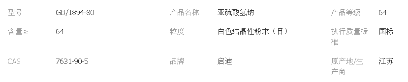 別 名:酸式亞硫酸鈉、重亞硫酸鈉
